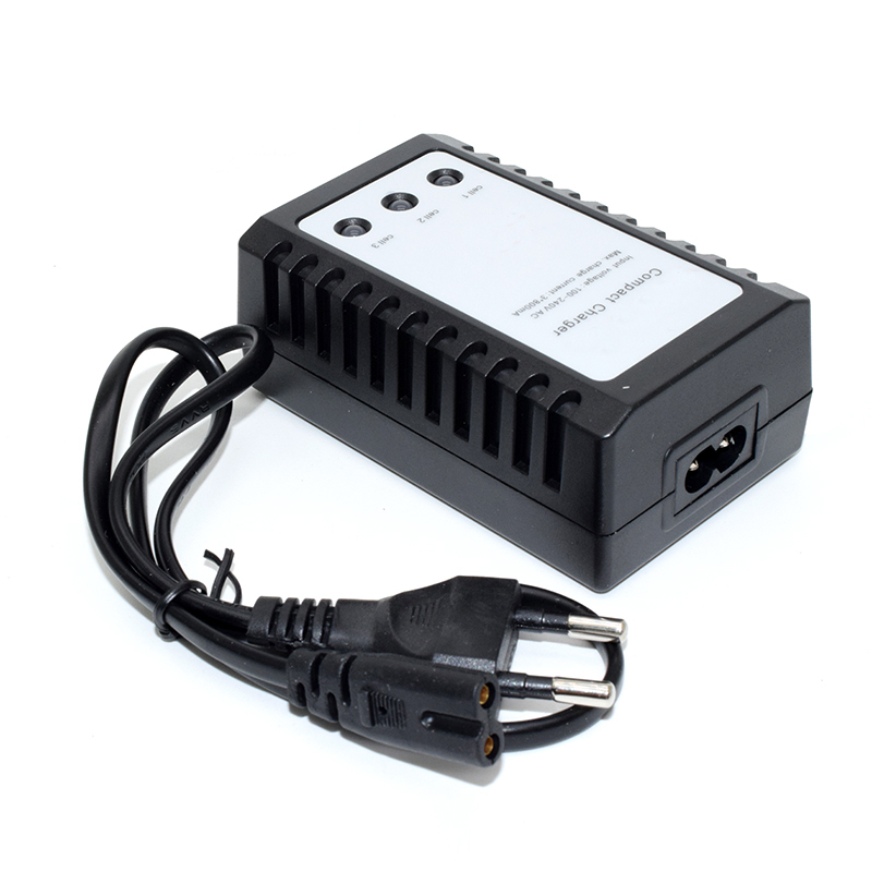 Affordable, easy-to-use AC charger to check charging status via LED lights Charge any 2S (7.4V) or 3S (11.1V) LiPo battery through the balanced plug Input voltage: 110-240VAC (including AC power cord for plugging into wall outlet) Charging current / power: 700mAx3 / 800mA maximum, balance tolerance: +/- 0.01v Includes: iMax B3 Pro Balance Charger, AC Power Cord, Instuctions