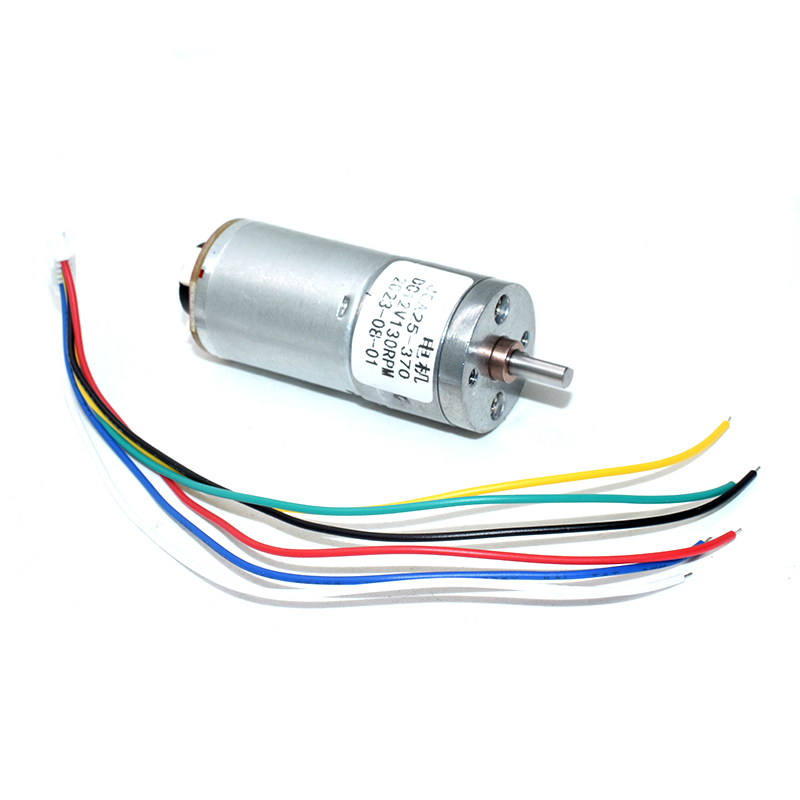 Red → motor power + (AC can control the positive and negative motor) Black → Coded Power - Negative (positive and negative level can not be connected to the wrong 3.3-5V) Yellow → signal feedback (motor rotation signal 11) Green → signal feedback (motor turn signal at 11 oclock) Blue → Coded power + positive (positive and negative levels can not be connected wrong 3.3-5V) White → motor power - (exchange can control motor positive and negative) [Diameter] 25mm Length varies according to the length of the parameter [Shaft] 12mm D 8mm long [Shaft Diameter] Diameter 4mm D Shaft
