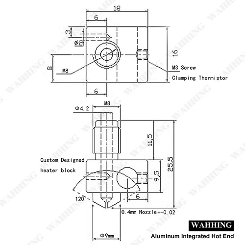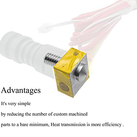 Product Features Aluminum integrated hot end. Heat transfer efficiency is higher. PTFE lined bucket, low friction, trouble-free printing. High precision, do not clog the nozzle. Do not block the pipe. product description 1pz DIY Aluminum Integrated Hot End It is easy to minimize the number of custom machined parts. 1 inch (20mm) aluminum alloy hot end PTFE lined bucket for low friction and trouble-free printing. High precision, do not block the nozzle, do not plug the pipe. In addition, Hot End has two other advantages. Heat transfer is more efficient because there is no single heater screwed to the hot spot on the nozzle. And one resistor is used as the heater. No need to wrap nichrome wire or bake heater core.