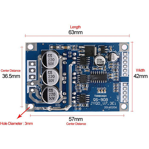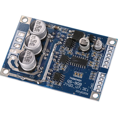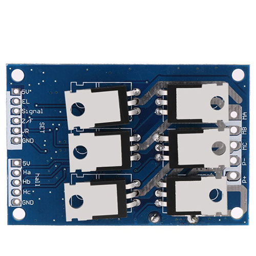 product description Product Specifications: Working voltage: DC12-36V Working current: ≤15A Drive power: ≤ 500W Speed ??voltage: 0.1V-5V Operating temperature: -40 ~ 85 ℃ Humidity: ≤90% RH Stall protection: yes Enable control: yes Excess current protection: yes Steering control: yes Speed ??control signal: yes Printed circuit board size: 63 * 42 * 17mm Weight: 30g Power Terminal OUT: VCC (positive supply) GND (negative one) MC (motor phase) MB) MA (motor phase U) SET for the control side: GND control terminal is grounded VR governor end 0-5V (corresponding to the motor speed 10% - 100%) ZF reverse control (then 5V or ground can change the motor rotation direction) M Tachometer pulse output (depending on the motor pole number corresponding to the output number of pulses per revolution) EL enable control terminal (connect 5V or ground, 5V ground, the motor stops grounding) Hall terminal Hall: 5V, Hall positive power Hall signal Hb, Hall signal Hc, Hall signal GND, Hall negative Note: Due to different Hall motor manufacturers, the Hall line sequence may be different from the picture display and needs to be adjusted. If the wrong line, it will not work properly, such as abnormal startup, high current burnout drive board. Tip: If you use less than 60W, do not need additional heat sink; more than 60W be sure to add heat sink. When installing the heat sink, attention must be paid to the 6 pieces of MOS insulation on the back of the module. It will permanently damage the driver board, but will not be insulated. packing list: 1 * brushless motor controller product information technical details Product weight 1.6 ounces Package size 6 x 5 x 0.6 inches