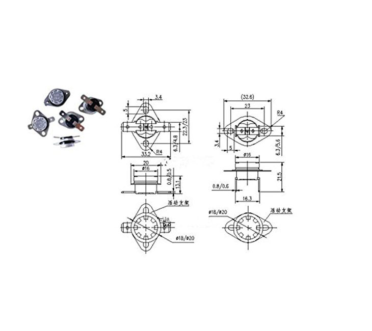 product description Product Name: Thermostat thermostat; Operation Type: NO (NO) Voltage: 250V 10A; circuit resistance: 50 Mohm Insulation resistance: 100 Mohm; Size (each): 3.4 × 1.2 cm / 1.3 "× 0.47" (L * H) Terminal Width: 6.35mm / 0.25 "; Mounting Hole Spacing: 2.4cm / 0.94" Material: Metal, Plastic Color: black, silver; Net weight: 5g;