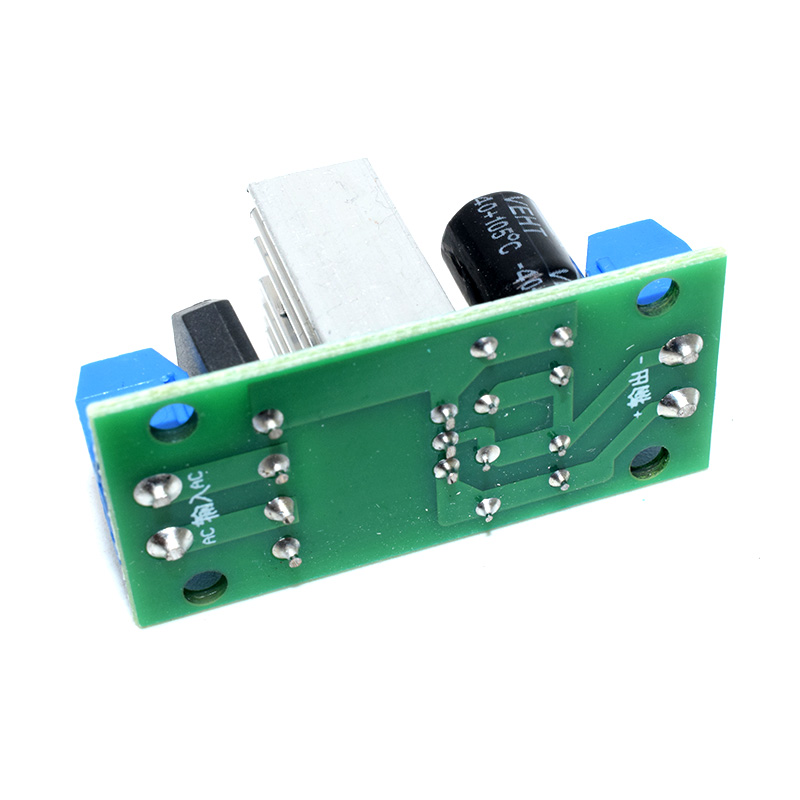 ?? New L7805 LM7805 Three-Terminal Regulator Power Module 5V 1.5A Rectifier Filter Power Converter Functional Description: Advantage (Advantage) (1) 3A rectifier bridge (input AC, DC) (2) 2 * 35V 220UF high-voltage capacitor (buffer filter) 3) high quality heat sink (with heat sink to enhance heat dissipation) (4) 1.5A high current chip The circuit board using full-wave bridge rectifier can be input AC, DC, input is divided into positive and negative. The filter adopts two 220UF 35V electrolytic capacitor to make the buffer filter, the output current can be stable and stable. L7805 with heatsink and 3A rectifier bridge, to meet the continuous output of large current. Application areas: DIY power supply, monitoring power supply, experimental power supply, camera power supply, car power supply, communication equipment power supply. Other parameters: Module size: 43mm * 20mm Input voltage (voltage): DC: 8 ~ 15V AC: 6 ~ 12V Output characteristics: Load regulation: 100mV Quiescent current: 8mA Output noise voltage: 42uV Input and output pressure: 2V Output impedance: 15mΩ Peak current: 1.5A