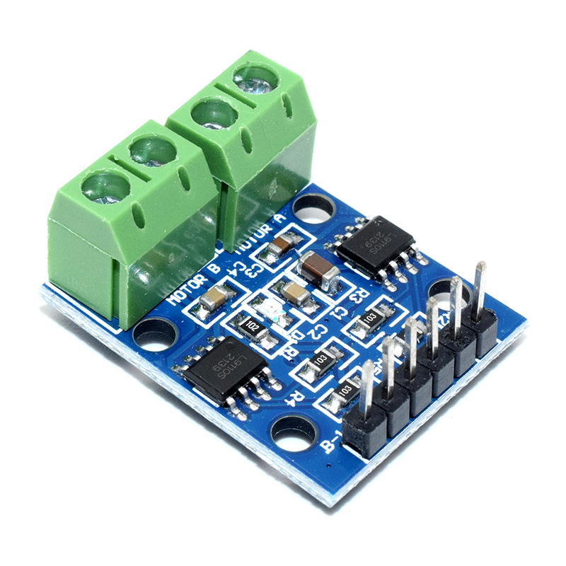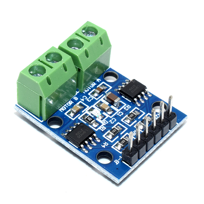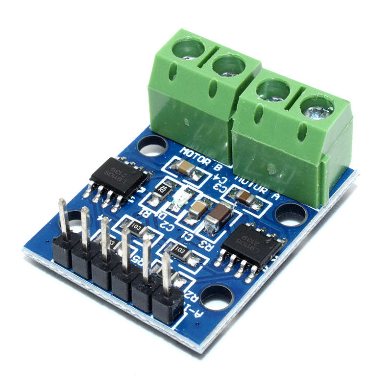 Features: 1. Low static current work; 2. Wide range of power supply: 2.5V to 12V. 3. Each channel has a continuous output current 800 ma ability; 4. The lower saturation voltage; 5. TTL/CMOS compatible output level, can be connected directly to the CPU 6. Output with clamping diodes, apply to the perceptual load; 7. Control and drive integration with IC; 8. Have the pin high voltage protection function; 9. Working temperature: 0 degree to 80 degree 10. Module can drive two DC motor or one 4-wire-2-phase stepper motors 11. Onboard two L9110S motor drive control chips