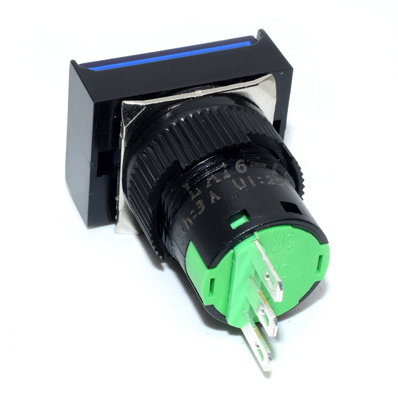 / LA16 Rectangle Momentary Reset 3pins No Light Blue
