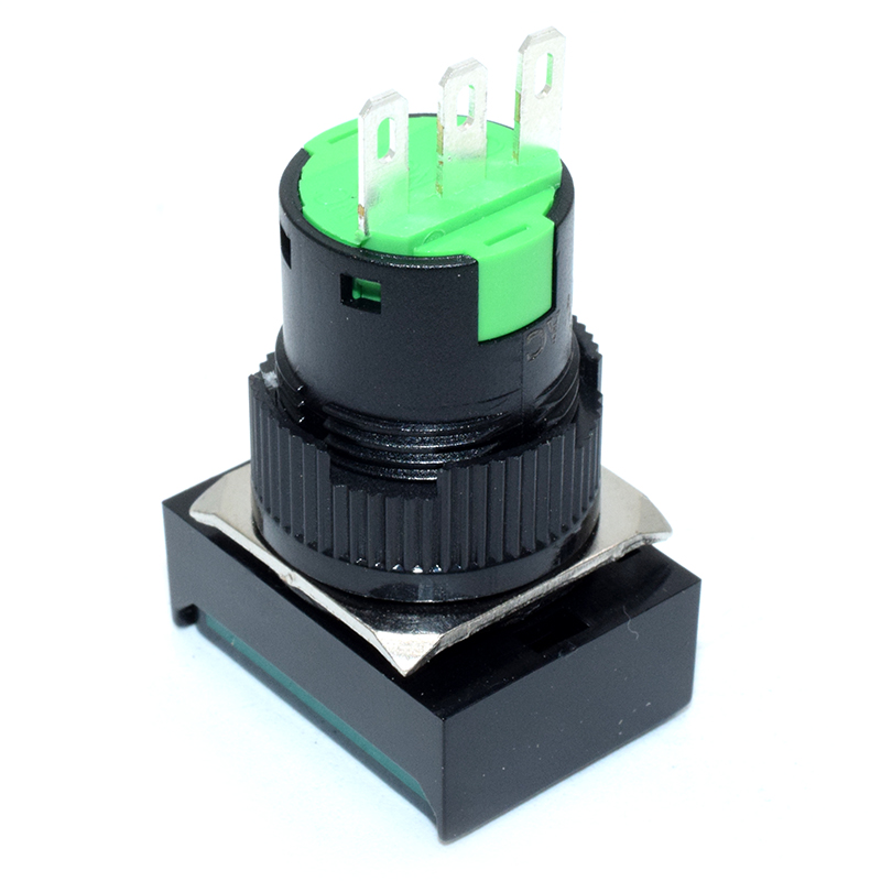 / LA16 Rectangle Momentary Reset 3pins No Light Green