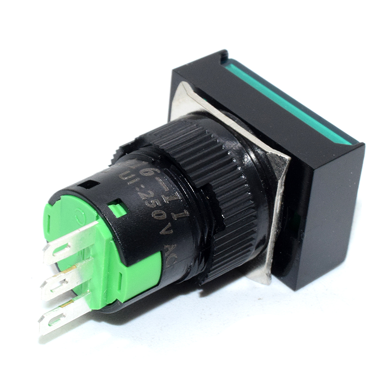 LA16 Rectangle Momentary Reset 3pins No Light Green