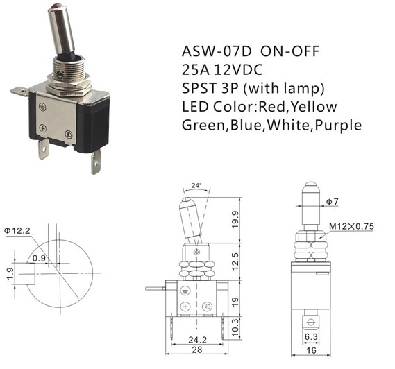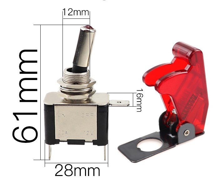 LED illuminated LED Toggle Switch With Missile Style Flick Cover Car Dash 12V 20A 3Pin Red/Blue/Purple/Green/Yellow/Transparent