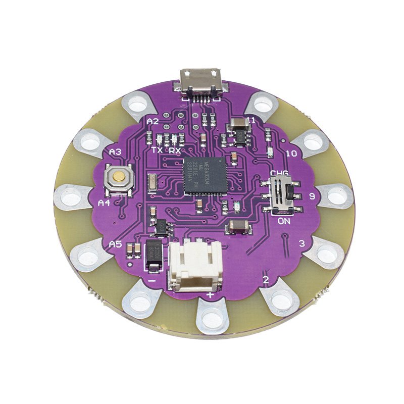 LilyPad Arduino USB is an ATmega32u4-based microcontroller board. It has nine digital input / output pins (four of which are available as PWM outputs and four as analog inputs), an 8 MHz resonator, a micro USB connection, a JST connector for a 3.7 V LiPo battery, and a reset Button. It contains everything you need to support your microcontroller; simply connect it to your computer with a USB cable or boot it with a battery.