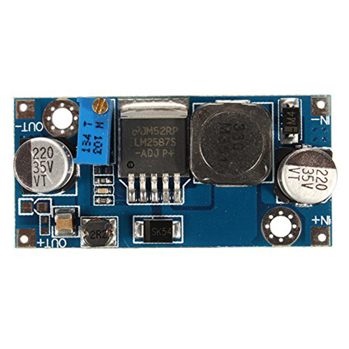 Specifications: 1.Module Properties:non-isolated step-up module(Boost) 2.Rectification: Non-Synchronous Rectification 3.Input voltage: DC 3-30V (Note: The boost module input voltage can not be higher than the output voltage,the output stable at the set value) 4.Output voltage: DC 4-35V 5.Output current: 5A MAX, (15mA unload) 6.Conversion efficiency: 92% (MAX) 7.Switching frequency: 100KHz 8.Output ripple: 50mV (MAX) 9.Load regulation: ± 0.5% 10.Voltage regulation: ± 0.5% 11.Operating Temperature: -40 °C to +85 °C 12.Potentiometer adjustment direction: clockwise (increase), counterclockwise (decrease) Package Included: 1 x LM2587 Module