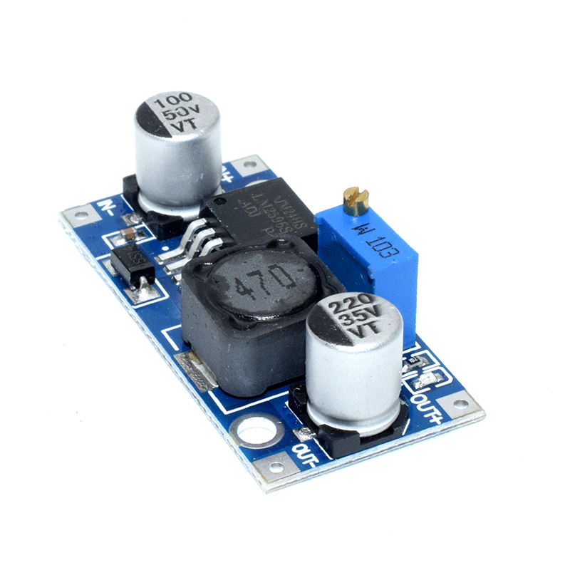 LM2596S; small DC-DC adjustable power supply; a step-down module; the positioning hole; indicating lamp