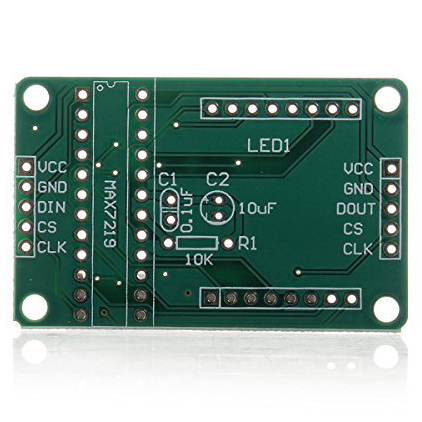 Specifications: A single module can drive an 8 x 8 common cathode lattice Operating voltage: 5V Size: 5 x 3.2 x 1.5 cm (L x W x H) LED color: red With four screws hole, aperture 3mm With input and output interfaces, supports multiple modules cascade Wiring instructions: 1. The module left side as an input port and the output port on the right 2. To control a single module, just connect the input port to the CPU 3. When cascading multiple modules, the input port of the first module connect to the CPU, the output port connect to the input port of the second one, and so on.