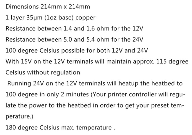 MK3/214*214*3mm(12/24V)Aluminum substrate hot bed heating plate heating platform