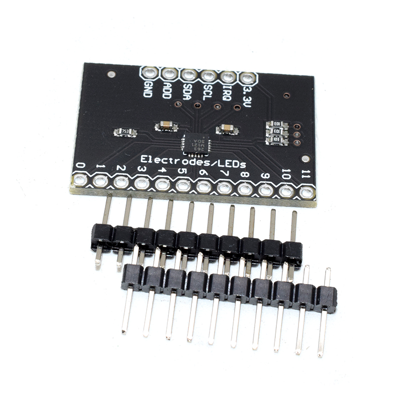 ?The MPR121 is a capacitive touch-sensor controller driven by an I2C interface. The chip can control up to twelve independent electrodes, as well as a simulated thirteenth electrode. MPR121 also has 8 LED driver pins. When these pins are not configured as electrodes, they can be used to drive LEDs. * There are four jumpers on the bottom of the board, all set by default (off). The address jumper connects the ADD pin to ground, which means the chips default I2C address is 0x5A. If you need to change the chip address (by shorting ADD to another pin), be sure to turn on the jumper first. The jumpers also connect the SDA, SCL and interrupt pins to 10k pull-up resistors. If you do not need pull-up resistors, you can turn on the jumpers by cutting off the traces that connect them. * The board is not specified, so the voltage provided should be between 2.5 and 3.6VDC. The VREG pin is connected to ground with a 0.1uF capacitor, which means that you can not run the MPR121 in low supply voltage mode (1.71-2.75VDC) unless you modify the board. Features: * Low-power operation. * 1.71 V to 3.6 V power supply. * 29μA supply current during 16 ms sample interval. * 3μA stop mode current. * 12 capacitive sensing input. * 8 inputs are multifunctional for LED driver and GPIO. * Complete touch detection. * Automatic configuration of each sensor input. * Automatic calibration of each sensor input. * Touch / release threshold and de-jitter touch detection. * I2C interface with interrupt output. * MPR121: 3mm x 3mm x 0.65mm. * Operating temperature range is -40 ° C to + 85 ° C.