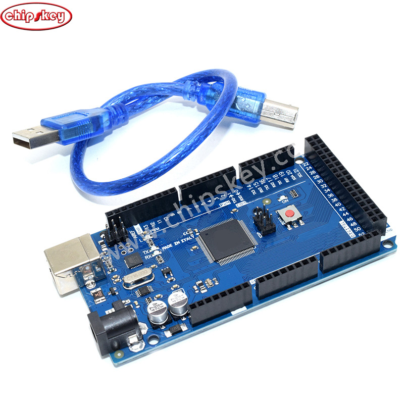 Netural Without LOGO ATMEGA2560 Mega R3 + USB Cable For ArduinosH Microcontroller: ATmega2560-16AU Operating voltage: 5V Clock Speed: 16MHz With USB cable version Description: This is compatible R3 Mega2560 ATmega2560-16AU control board with USB cable Mega is an ATmega2560 as core microcontroller development board itself has 54 groups digital I / O input / output terminal (14 groups do PWM outputs), 16 sets of simulation than the input side, group 4 UARTs (hardware serial ports), using the 16 MHz crystal oscillator. With the bootloader, download the program directly via USB without having to go through other external writer. Supply part of the optional USB power, or as an external power using the AC-to-DC adapter and battery. Rapid growth due to open the original code, as well as the concept of using Java (cross-platform) C language development environment for peripheral module. The main reason attracted Artist can quickly use the language with Flash or Processing ... software communication, to make multimedia interactive works. development IDE interface is based on open-source principles, allows you to free download for use in project work, school teaching, motor control, interactive works. Power supply design There are two options for the power supply system of the Mega USB direct power supply or external power supply. The choice of power supply will be switched automatically. External supply AC-to-DC adapter or the battery can be selected on this control panel. Limit the voltage range of 6V ~~ 12V, but if the voltage supplied is less than 6V, I / O port may not be supplied to a voltage of 5V, and therefore instability; If the voltage is greater than 12V, the regulator device may possibly overheating protection, are more likely to damage the MEGA. Therefore recommended operating supply 6.5 ~ 12V, the recommended power supply to 7.5V or 9V. The development board have been rigorously tested each product at the factory before to burn a Blink small program, please get the goods energized inspection under the L lamp will be lit for 3 seconds and then off for 1 second, non-stop cycle to Detection of the board is good or bad. Its chip is Original Specification: Microcontroller: ATmega2560 Operating voltage: 5V Input voltage (recommended): 7-12V Input voltage (limits): 6-20V Digital I / O pins: 54 (of which 14 provide PWM output) Analog input pins: 16 DC current per I / O pin: 40 mA DC current for 3.3V Pin: 50 mA Flash Memory: 256 KB of which 4 KB used by bootloader SRAM: 8 KB EEPROM: 4 KB Clock Speed: 16MHz Package included: 1 x MEGA 2560 R3 development board 1 x USB cable