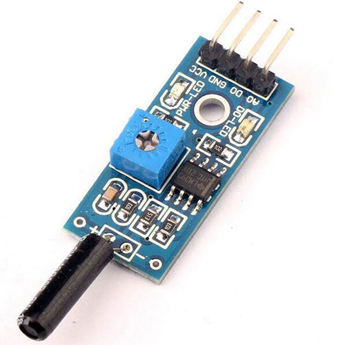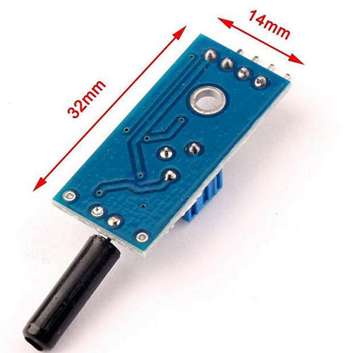 Features : 1. high sensitivity vibration switch , default by SW-18010P vibration sensors . 2. the comparator output signal is clean, good waveform , driving ability , more than 15mA 3. the working voltage of 3.3V-5V 4. the output format : digital switching outputs ( 0 and 1 ) 5. a fixed bolt holes for easy installation 6. small PCB board size : 3.2cm x 1.4cm 7. using a wide voltage LM393 comparator Module wiring instructions : 1.VCC: positive power supply 2.GND: negative power connection 3.DO: digital signal output 4.AO: This vibration sensors with this function does not work Instructions for use: 1. the product does not vibrate, vibrate switch was disconnected state, the output -side output high , the green light does not shine ; 2. the product vibration, vibration switch instantly turns on, output of low output , the green indicator light ; 3. the output can be directly connected to the microcontroller through the microcontroller to detect high and low , thereby detecting whether the vibration environment , played the role of the police.