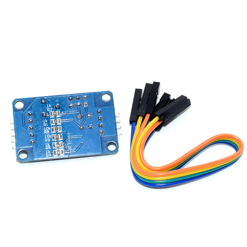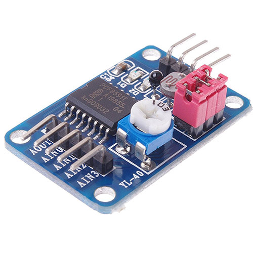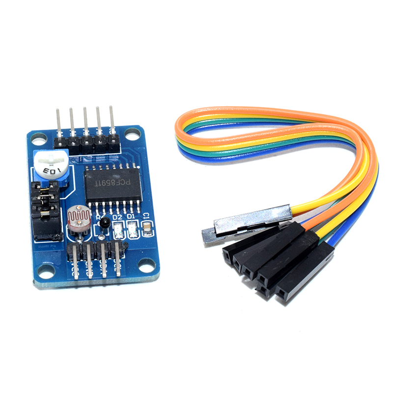Adopts PCF8951 chip Supports external 4-way voltage input acquisition (voltage input range is 0 to 5 v) Integrated photosensitive resistance, can pass AD gathering accurate numerical value of environmental light Integrated thermal resistor, can pass AD collection environment temperature precise values Integrated 0 to 5V voltage input acquisition (by blue potentiometer to adjust the input voltage) After With power indicator light (for the module power supply indicator goes on) With DA output module, when the module DA output voltage reaches a certain value, DA output indicator light will light up board, the bigger the voltage, the brighter the indicator