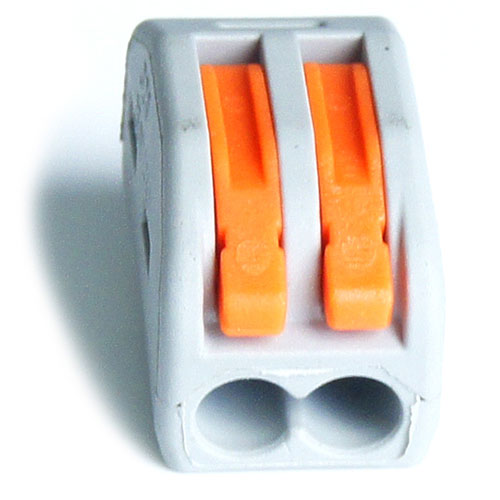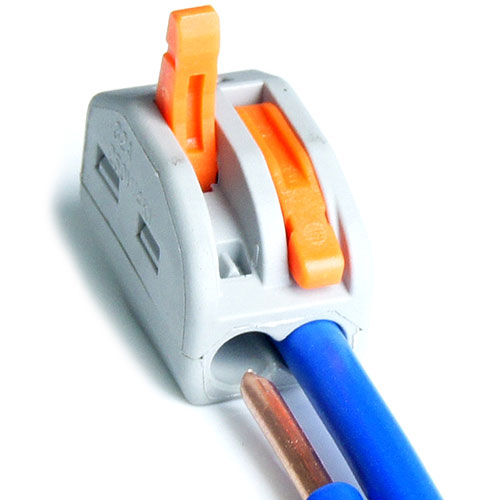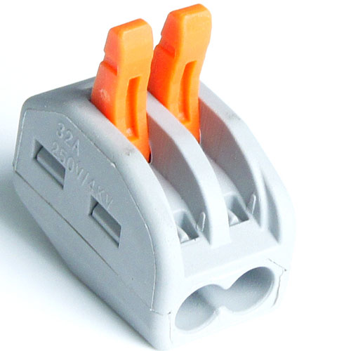 2-pin reusable spring bar junction box cable wire connector ? Product Specifications: Material: plastic Colors: gray and orange Shape: rectangle Interface Type: AC / DC Now: 32 A. Voltage: 250V / 4KV ? size: 2 pins: approx. 20x14x12mm / 0.78 "x0.55" x0.47 " ? ? feature: - wire connector. No loose thread, the danger of tape fragility, transparency and safety. - With test holes to measure voltage without removing the tape. - Inline, wrong insertion and removal, reconnect. - Each contact point in the film independent, wire diameter can also be different, safety short circuit. - For 0.08-2.5 (4.0) mm? hard and soft conductors.