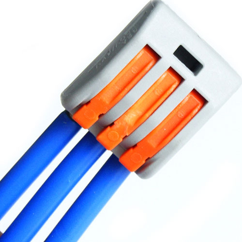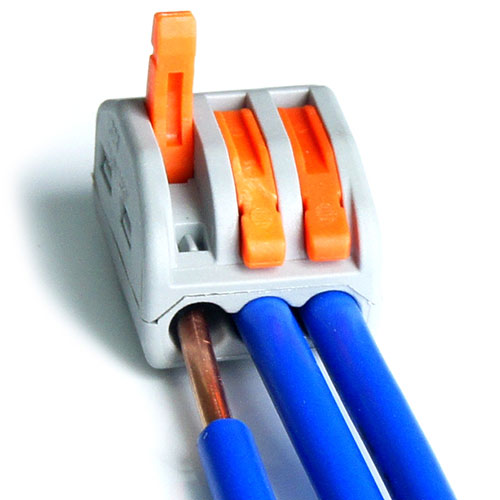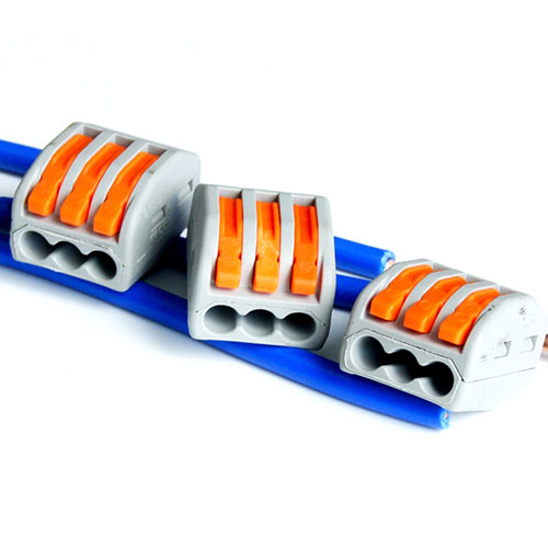 3Pins Reusable Spring Bar Terminals Cable Gland Specifications: Material: Plastic Color: Gray and Orange Shape: Rectangular Interface Type: AC / DC Current: 32 A Voltage: 250V / 4KV Dimensions: 3 Pins: 20x16x14mm / 0.78 "x0 .62 "x0.55", Features: - Wire connector - No wire loosening, Hazard due to adhesive tape, Transparent, Safe to view - With test hole for measuring voltage without tape removal. Out, reconnection - each contact in the film independent, wire diameter can also be different, safety short circuit.
