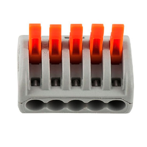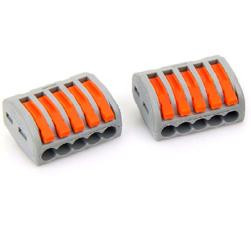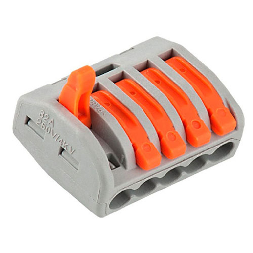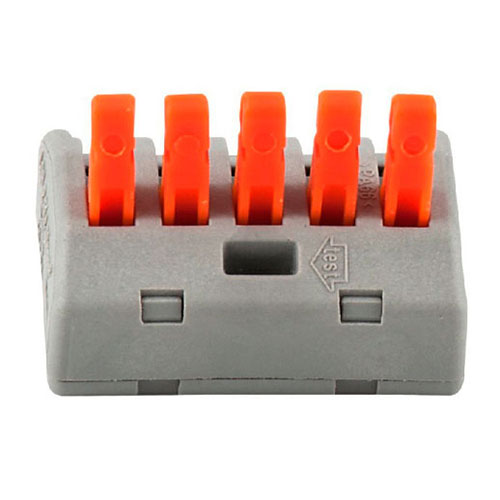 5Pins Reusable Spring Bar Junction Box Cable Conductor Connectors ? Material: plastic Colors: gray and orange Shape: rectangle Interface Type: AC / DC Now: 32 A. Voltage: 250V / 4KV ? size: 5 needles: approx. 20x14x12mm / 0.78 "x0.55" x0.47 " ? ? feature: - wire connector. No loose thread, the danger of tape fragility, transparency and safety. - With test holes to measure voltage without removing the tape. - Inline, wrong insertion and removal, reconnect. - Each contact point in the film independent, wire diameter can also be different, safety short circuit. - For 0.08-2.5 (4.0) mm? hard and soft conductors.