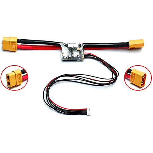 Specifications: Max input voltage: 28V Max current sensing: 90A Voltage and current measurement configured for 5V ADC Switching regulator outputs 5.3V and 3A max 6-pos DF13 cable plugs directly to APM 2.5s PM connector Support 6S battery Product Dimensions 4 x 2.5 x 0.3 inches Item Weight 2.08 ounces