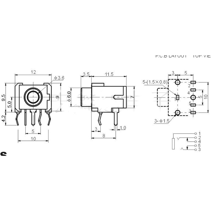 PJ306 3.5mm PCB Panel Mount Audio Jack Connector with Nut