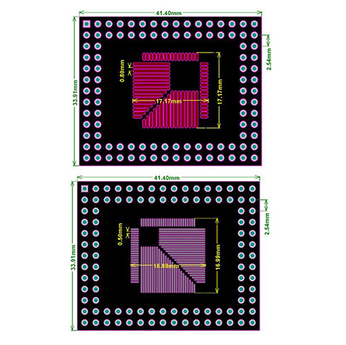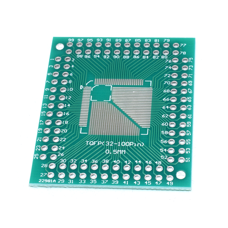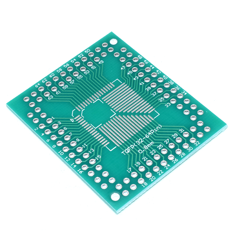 Product description Double side can be used 100% brand new Front side for pin pitch size 0.8mm,It can be used for most of the QFP/TQFP/LQFP/FQFP (compatible with 32pin~64pin) to 2.54mm DIP Back side for pin pitch size 0.5mm,It can be used for most of the QFP/TQFP/LQFP/FQFP (compatible with 32pin~100pin) to 2.54mm DIP Dimension: 33.91 x 41.4mm/1.34" x 1.63" Main color: green Detailed dimensions Please refer to the picture Package include: 20 PCS DIP Converter PCB Board