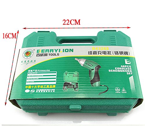 Product description Speed: 180RPM Max Torque: 3N.M Flashlight Battery Voltage: 3.6V Battery Size: 1300mAH Battery Type: Lithium Charging Time: 3-5 Hours Usage Time: Depends on Usage Dimensions: Main product dimensions: 110x150x50mm (L x W x D) Main product weight: 401g Package Contents 1x Cordless Screwdriver 4x 50mm Screw Head Attachments (Product Specific) 2x Drill Attachments (Product Specific) 28x Screw Head Attachments (Product Specific) 8x Socket Attachments (Product Specific) Magnectic Screw Attachment Fixture (Product Specfic) Power Adapter (Product Specific) User Manual (Product Specific) Tool Box (Product Specific) Product information Technical Details Item Weight 2.98 pounds Product Dimensions 8.7 x 6.3 x 2.2 inches Item model number 436
