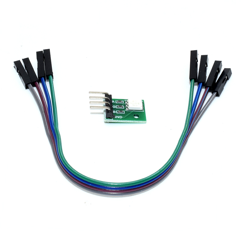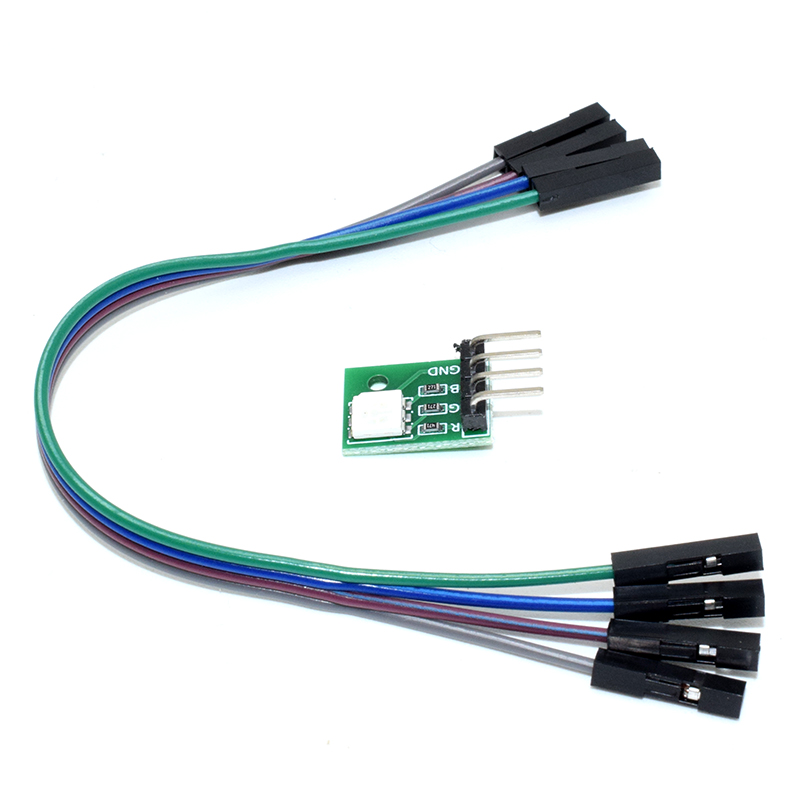Working voltage: 3.3V / 5V; 5050 full-color super bright LED; Can be connected to a variety of microcontrollers. product description 1 PCB board size: 15mm * 10.6mm 2 PCB color: green 3 5050 full color super bright LED 4 has a current limiting resistor to prevent burning LED 5 can connect a variety of microcontrollers 6 high-brightness LED 7 working voltage: 3.3V / 5V 8, weight: 4g 9, can be directly inserted into the use of Arduino motherboard Quantity: 1 piece Shape Color: green + multicolored Material: FR4 specification Screen Type: LED Operating voltage: 3.3 or 5V English manual /: yes Size and weight Size: 0.79 inch x 0.39 inch x 0.31 inch (2 cm x 1 cm x 0.8 cm) Weight: 0.14 ounces (4 grams) packing list: 1 * RGB LED module 1 * DuPont cable (20CM)