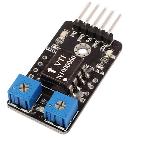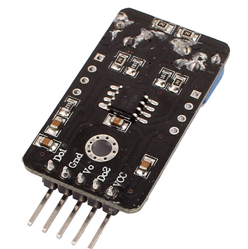 Size:20mm X 8mm X 35mm Main chip: LM393, tilt sensor probe Working voltage: DC5V Product features: 1, the angle signal analog voltage output [0-180 degree corresponds to 0.5-4.5V] can be single chip AD acquisition; 2, two-way tilt signal alarm output; 3, the output valid signal low level indicator light; 4, when the output alarm signal left leaning green light, the right tilt tilt right output alarm signal yellow light; 5, the angle of the alarm range 0-90 degrees 90-180 degrees, the whole range adjustable, adjust the accuracy of 1 degrees. 6, with the installation hole to facilitate the installation of fixed; 7, the circuit board tilt signal for the TTL high and low level, can be directly connected to the microcontroller IO port. Application: intelligent body balance testing, teaching demonstration, product development, etc.
