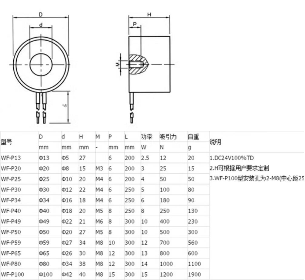 Suction-cup dc electromagnet P30/22 small electromagnet suction chuck voltage 12 v and 24 v 10 kg