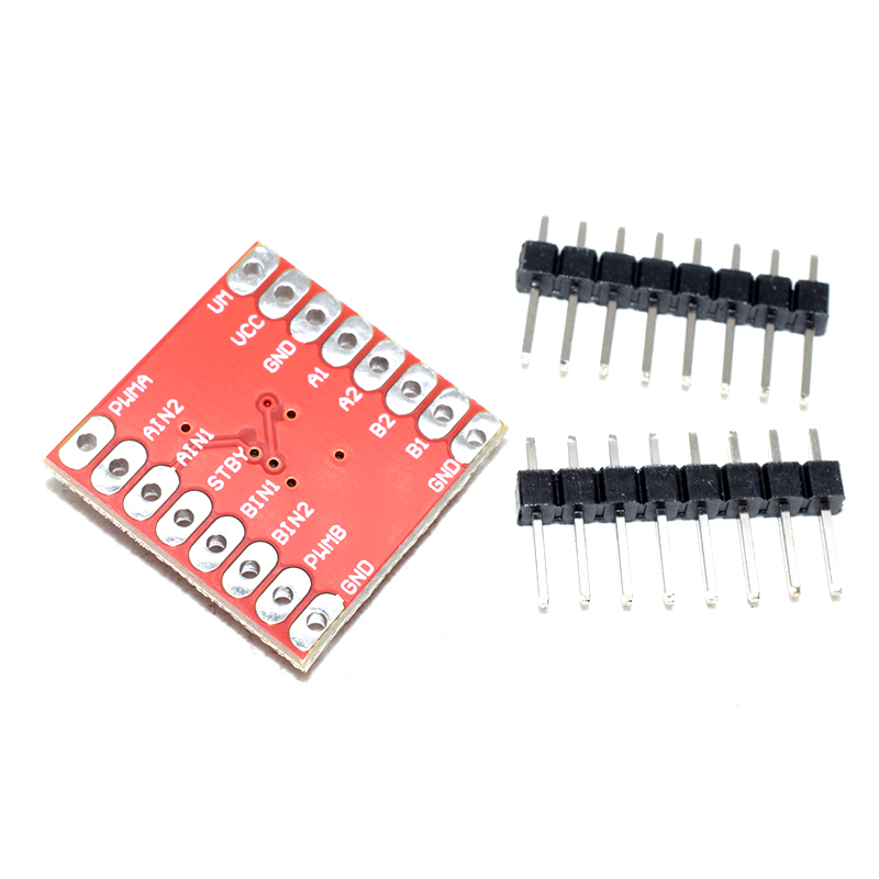 product description Features: Circuit Both power cords contain decoupling capacitors. All pins of the TB6612FNG are split into two 0.1-inch pitch connectors. These pins are arranged on one side with input pins on the other side. Standby control to save electricity. CW / CCW / short brake / stop motor control mode. Built-in thermal shutdown circuit and low voltage detection circuit. Filter capacitors on both supply lines specification: Supply voltage: VCC = 2.7-5.5V for VM = 15V max Output current: OUT = 1.2A (average) / 3.2A (peak) Size: about 2 X 2 cm / 0.79 X 0.79 in