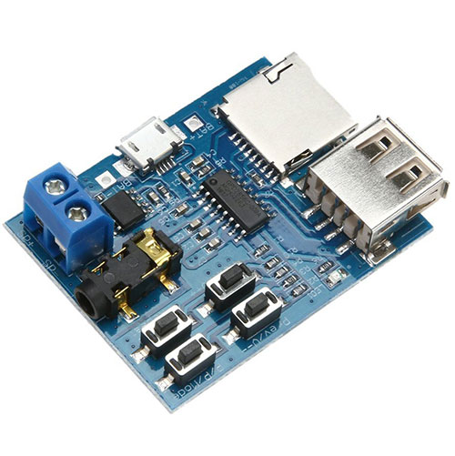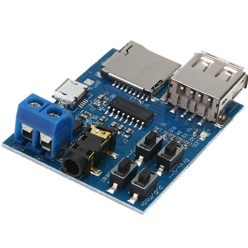 TF card U disk MP3 Format decoder board amplifier decoding audio player module product description Button Description: "Prev / V--" button: "Press" to switch to the previous song, "long press" to decrease the volume "Next / v + +" button: "Press" to switch the next song, "long press." "P / P / Mode" button: Press "Play / Pause" switch, "long press" is U disk, TF card mode. "Repeat" button: Press "Single / All Song" mode (not long press) Note: 1, "long press" approximate 2S. 2. If you use the U disk mode, it is recommended to use 5V power supply, some U disk does not support 3.7V power supply. specification: Project: decode play module Power range: 3.7 ~ 5. 5V Net weight: 9g Size: approx. 50 × 37 × 14mm / 1.97 × 1.46 × 0.55in.
