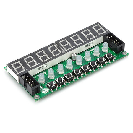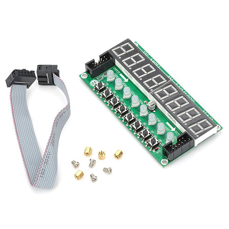 Product Description: 1, using the TM1638 digital tube driver chip 2, only three ordinary IO to drive, no mcu scan, save mcu resources 3, with eight 8-segment digits (including decimal point), eight-color led and eight key input, can be extended to 3 * 8 buttons, and led digital tube can be individually controlled 4, 8 brightness adjustment support, digital and led the same brightness 5, supports cascading up to six identical modules 6, with eight digital tube, led eight color and eight key input, it can be extended to 3 * 8 buttons (does not provide technical support, see the manual on their own extension), and led digital tube can be individually controlled 7, size :10.0 * 5.1 (cm)
