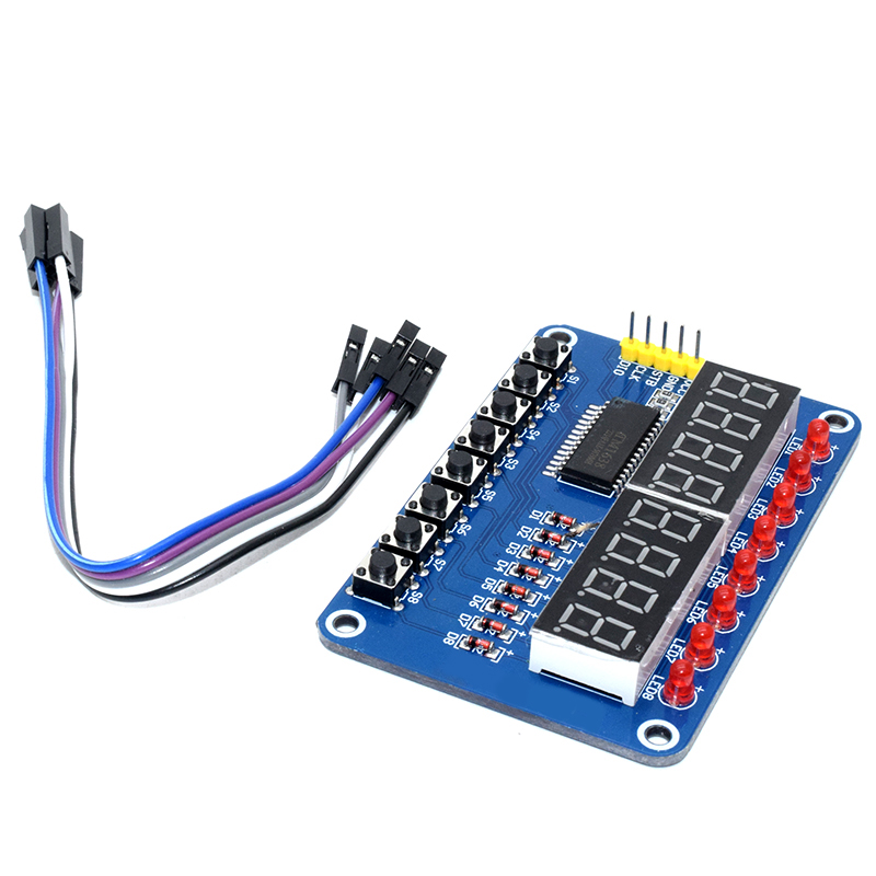 product description Features: 8 8-bit 8-digit LED digital tube, a total of cathode LED digital tube. Using the TM1638 chip, the module captures three or more common SCM peripheral circuits. Its advantage is that only three IO ports are occupied while driving. Supply chain management does not need to work for display and critical scanning. Only need to read the relevant registers to send display data or test button, you can effectively save MCU resources. The keys are sensitive and effectively display. specification: Weight: 28g Material: glass fiber reinforced plastic, PBT shell, PA blade How to connect: VCC GND 5V power supply, STB CLK DIO SCM IO port. Package Included: 1 * 8-bit LED TM1638 display module