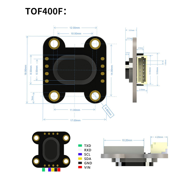 / TOF400F VL53L1 Time-of-Flight (ToF) Laser Ranging Built-in MCU Algorithm