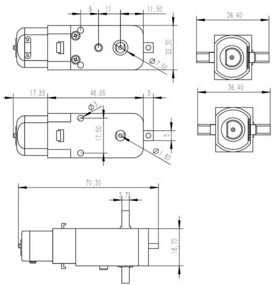 TT Motor 1:48 3-6V with 2 Male jumper cables , Double Shaft