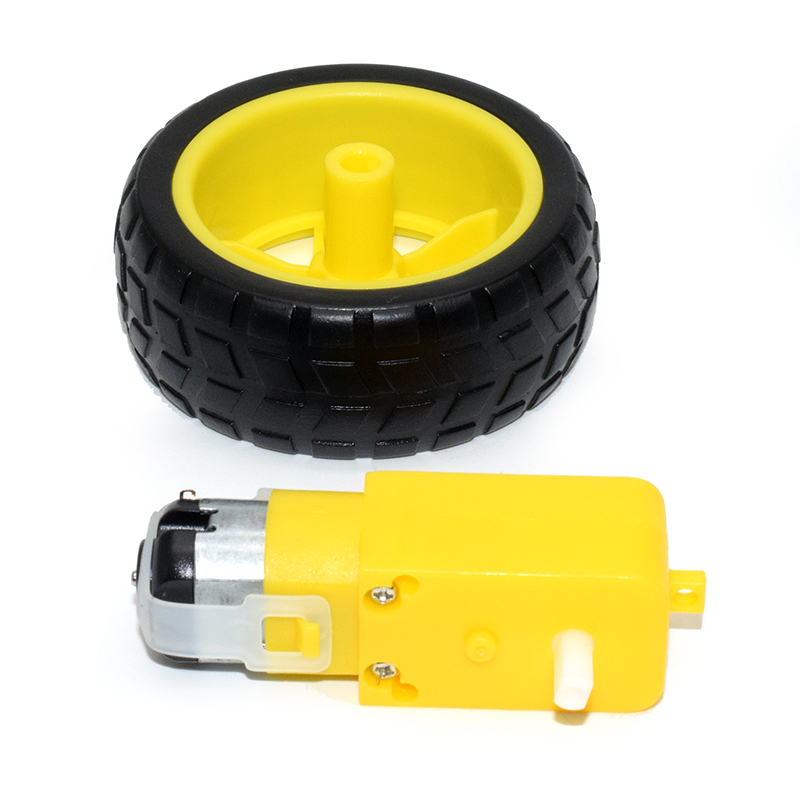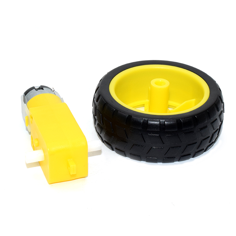 product description Voltage: DC3-6V Reduction ratio: 1:48 Torque: 0.8kg.cm Tire diameter: 65mm Tire thickness: 28mm Package contains: 2 X gear motor 2 X tires