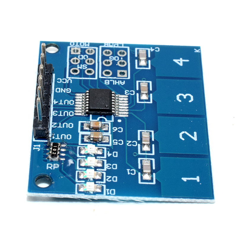 product description This capacitive touch sensor module uses the TTP224 integrated circuit to easily add capacitive touch inputs to your project. With 4 sensitive touchpads, it is an ideal replacement for older switches. specification ? Onboard 4-Button TTP224 Capacitive Touch Sensor IC ? 4 status indication LEDs ? Operating voltage range: 2.4 V to 5.5 V. Configurable output mode ? PCB size: 35 mm x 29 mm Product Features Onboard 4-Button TTP224 Capacitive Touch Sensor IC 4 status lights Operating voltage range: 2.4 V to 5.5 V. Configurable output mode PCB Size: 35mm x 29mm