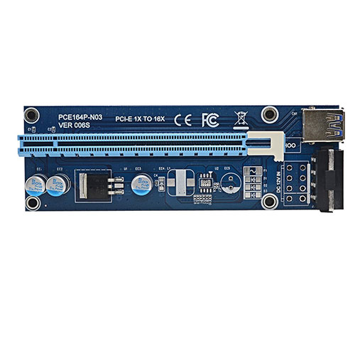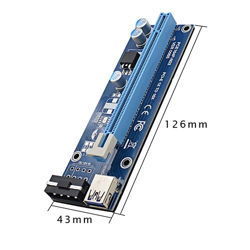 product description Perfect length: The 60cm USB 3.0 expansion cable gives your PCI-E device a flexible location. Safe and reliable: Three high-quality solid capacitors make power transmission more secure and stable widely used: ? This stand-pipe kit is ideal for building Ethereum mining rigs or any other alternative altcoin mining rig Reduce the motherboards power supply burden: SATA 15-Pin Male to Molex 4-Pin Power Cord Connects directly to the power supply, reducing the boards power supply burden packing list: 1 x PCI-E 16X riser card (PCB may vary by image) 1 x PCI-E 1X riser card (PCB may vary by image) 1 x 60 cm USB 3.0 cable (cable color may vary by image) 1 x 4-pin MOLEX to 15-pin SATA power cable product information Product size 6 x 5.2 x 0.2 inches Product weight 0.32 ounces