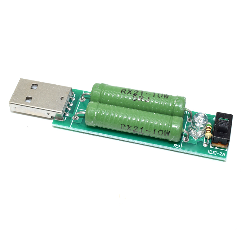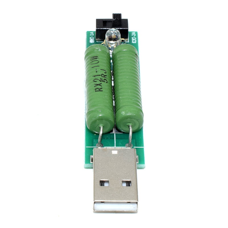 product description Size: 5V 1A / 2A load tester Module Features: Power: 10W-20W Resistance: 5 ohm -2.5 ohm exchange Working voltage: 5V Working current: 1A / 2A note: Due to the high current through the winding resistance, when the load tester work, will have a high temperature. Do not touch the winding resistance during use, otherwise it will only be used to avoid scalding. Keep the load tester away from combustible items. The first time using resistive heating may have some strange smell, disappear after using a few times. this is normal phenomenon. Please do not worry about this. product information Size: 5V 1A / 2A load tester Package size 3.5 x 2.4 x 1.2 inches