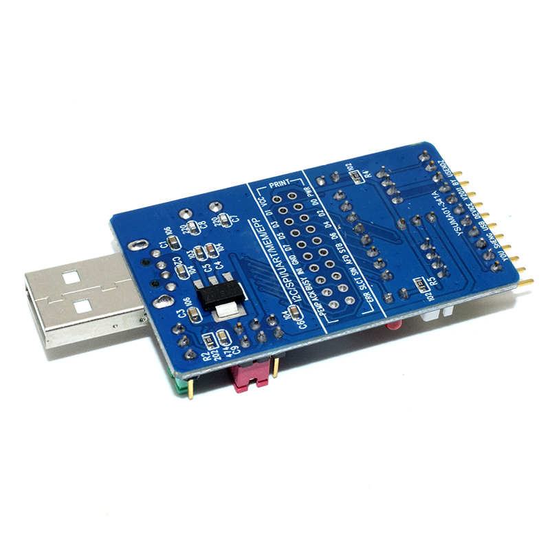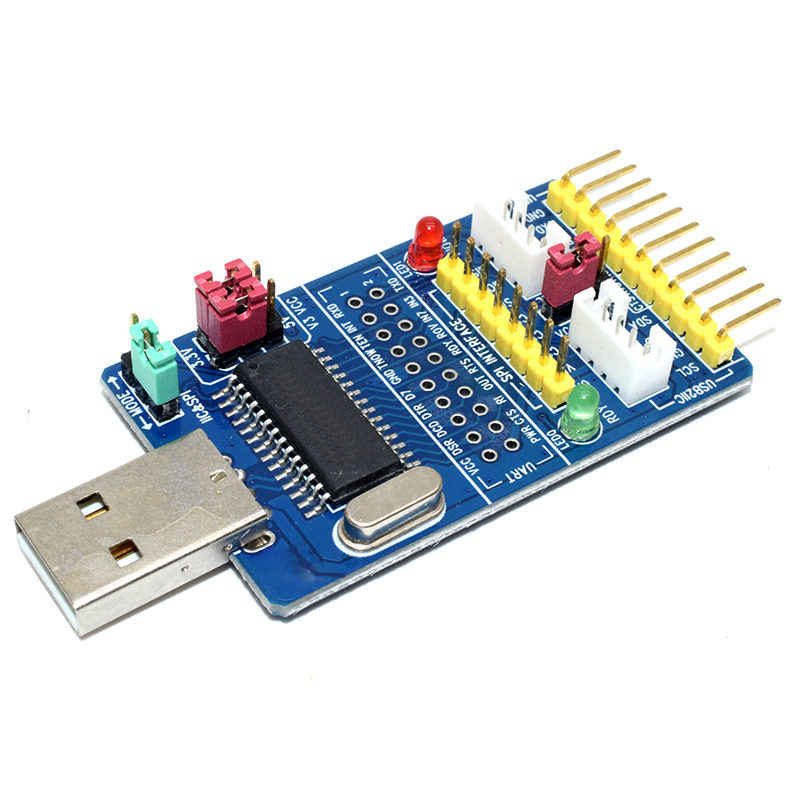 brief introduction Single chip integrates a variety of functions, all the hardware is completed USB-> I2C adjustable rate, 20K 100K 400K 750K USB-> SPI Master 2M speed, not adjustable USB-> UART Support baud rate 50bps ~ 2Mbps baud rate can be unconventional configuration USB-> EPP / MEM parallel Simple, practical, high cost. feature Full-speed USB device interface, compatible with USB2.0, standard USB-A male design; PC USB direct interface power supply, analog standard serial port for upgrading serial peripherals, or by adding an additional USB port; Support 3.3V and 5V TTL target system, the computer-side Windows operating system is fully compatible with serial applications without modification; Serial support 5,6,7 or 8 data bits, support for parity, even parity, blank, no parity mark; Support serial port transmission enable, serial port receive peer transmission rate control signal and MODEM contact signal; By adding level conversion module provides RS232, RS485 and other interfaces; (Annex module for sale) Two parallel interface modes are available: EPP and MEM; USB to Parallel for simple digital I / O control; Support a variety of serial communication modes, UART, I2C, SPI, etc; Support 2-wire and 4-wire synchronous serial interface and other commonly used; I2C has four adjustable rates: 20K, 100K, 400K, 750K; SPI rate is 2M, support SPI Mode0 write timing; STC supports a full range of single-chip computer program download and debugging, STC official recommended program; Support the outward output voltage, choose 3.3V 5V output; Clear work status indication: green and red combination status display, insert green indicator for UART, I2C and red indicator light for SPI: Dual interface output, support 2.54MM 2.0MM pin connector and socket interface; Full-duplex hardware serial port, built-in send and receive buffer, support communication baud rate 50bps ~ 2Mbps, can be configured unconventional baud rate. Supports WINDOWS 98 / ME / 2000 / XP / server 2003 / VISTA / server 2008 / WIN 7/8 64/32 bit. Provide driver DLL and API interface library, rich secondary development program source code for reference. application Serial port expansion: Analog serial port used to upgrade the standard serial port, or add an additional USB port; Hardware debugging: Using I2C I2C interface chip debugging, programming I2C interface EEPROM, SPI interface FLASH memory; MCU programming: MCU through the UART interface burning process; Debugging: get program information through the UART interface to print, view the program running; Data Acquisition: Through the I2C, SPI to obtain the devices sensor data type; Brush: Brush serial port, firmware updates, brush TV, routing, motherboards and other equipment.