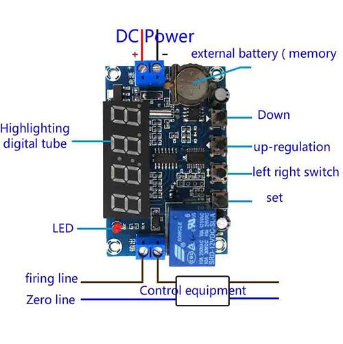 Title: Time control switch Working voltage: 12V Control current: 10A Timing error: <1S / 24H Number of switching units: three groups / day Memory: external battery (durable) Size: 70 * 45 * 17.5mm ? Setting method: code parameter list ? P0 set real-time P1-P2 Set the first time period P3-P4 set the second issue P5-P6 set the third issue P7 calibration time ? prompt: 1. In the installation process, no button automatically confirm 10 seconds back 2. Set the start time before the end time. If later than the end time setting, this setting will be invalid 3. This product is a set of three work day, if you only need to use a period of time, you can set the remaining period of time to start and stop the same value ? Case: How to enter the setup mode? Press SET button to enter setting mode ? Set the first time period ? I want to start cooking rice cooker at 17:00, 6:00 off, how to set? step: Press the SET key to enter the setting mode, display P0, press the raise key, display as P1, press the SET key P1 corresponding time flashing, switch key to select the appropriate time for a single number to adjust, down button to adjust the time after 17 clear, set to complete P1, press sET key, display P1, press increase key to select P2. Press sET button, set the time for 18:00 P2, the first paragraph of the setup is completed ? Features: Adjustable timing error Travel calibration more precise time control. Error correction can be set by P7, once set, long time no need to track settings, convenient and practical.