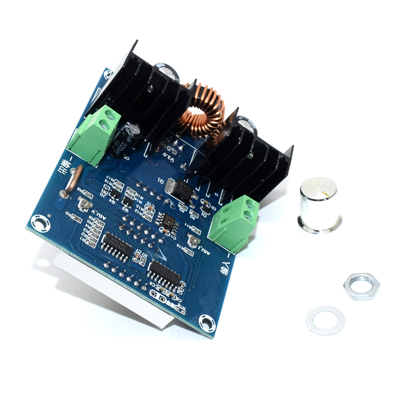 XH-M403 digital voltage and current regulator module XL4016 high-power 8A DC voltage regulator 12V24V Regulator mode: PWM modulation Input voltage: DC4-40V Output voltage: DC 1.25-36V Maximum current: 8A Maximum power: 200w Conversion efficiency: 94% Switching frequency: 180KHz Dimensions: 78 * 63 * 40mm Other functions: short circuit protection, current measurement