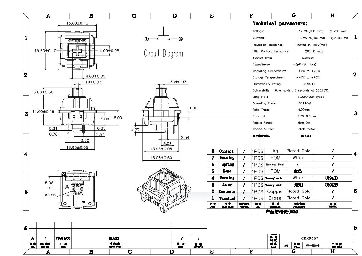 White Outemu Switches for Mechanical Keyboard Gaming MX Switch