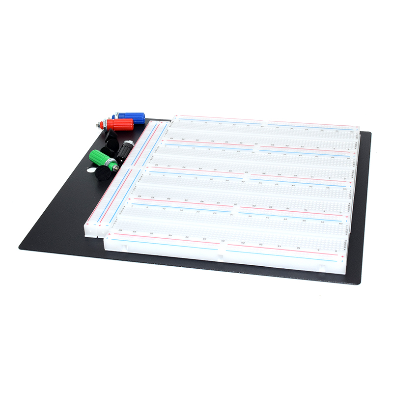 3220 connection points (insertion holes) Total: 2520 connection point circuit area, seven 100 connection point distribution bar, providing 14 power rails Standard 0.1 "(2.54mm) pitch for IC mounting; external power connector; aluminum rugged backplane Nickel silver alloy pins are pre-stressed, spring loaded and non-corrosive for long-term reliability; white plastic body with easy pin count printed rows and columns 65 jumper-to-male jumpers with different lengths and colors - no time-consuming wire making required; breadboard size: 7.25 x 7.5 x 0.3 inches (184 x 190 x 9 mm) The perfect prototyping circuit, electronic and electrical experiments without soldering; very much in line with the Arduino
